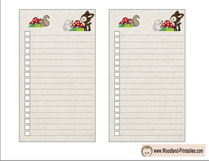 Here are some really cute Free Printable Woodland Baby Shower To-Do Lists with images of adorable woodland creatures and woodland forest animals. You can use these to-do checklists to make list of tasks for your Baby Shower Party or Birthday Party and even make to-do lists for your weekly or daily chores. These adorable lists are decorated with cute woodland animals and images of wild mushrooms and flowers.